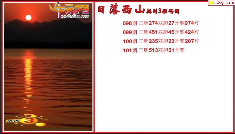 首页 > 排列3图谜 > 2026101期P3日落西山胆码图谜