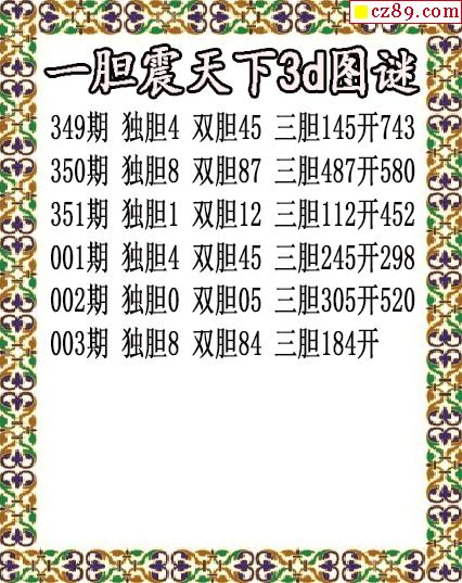 一胆震天下独胆2026003期3d图谜(原创)-【3d字谜】福彩3D今日3d字谜总汇大全_3D谜语专区